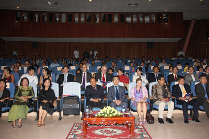 湖南飞燕杂技团昨(20)日晚在四臂湾会议厅举行官方专场演出,以庆祝中柬建交55周年,增进两国文化艺术的交流。 柬埔寨文化艺术部长恒参、中国驻柬大使馆政务参赞李志工等柬埔寨政府官员、外国好友人士等嘉宾300多人观看演出。 中国驻柬大使馆政务参赞李志工说,杂技艺术在中国已有2000多年历史,代代相承,至今成为传统表演艺术中一颗灿烂的明珠,中华民族珍贵的文化遗产。 李志工说,此次湖南飞燕杂技团来到柬埔寨,为我们带来一台丰富多彩、极具艺术性和观赏性的节目,其中包括“集体柔术”、“魔术”等等。希望通过观赏演出,尽情感受中国文化的魅力,度过一个愉快、美好的夜晚。 回顾中柬建交55年来的友好关系发展,李志工说,两国建交55周年在中柬2000多年友好交往的历史长河中只是短暂的瞬间,然而正是在这短短的55年中两国友好关系得到前所未有的快速发展。“由两国老一辈领导人共同缔造和精心 培育的中柬友谊历久弥坚,经受住了时间和国际风云变幻的考验,成为不同社会制度国家之间友好合作的典范。” “今天湖南飞燕杂技团的来访演出正是中柬文化交流的一个真实写照,也是中柬55周年相关列庆典活动中的重要一环。” 文化艺术部长恒参对湖南飞燕杂技团专程为庆祝中柬建交55周年前来演出表示欢迎和感谢。 他高度评价两国在文化艺术等各个领域合作关系不断发展,并且强调,以洪森总理为首的王国政府高度重视发展柬中友谊与合作关系,推动两国全面战备合作伙伴关系深入发展。 恒参部长表示相信,通过杂技团的精彩演出,加深了观众对中国文化艺术的了解,从而增进两国人民之间的文化交流与互相了解。 今(21)日晚,湖南飞燕杂技团将在四臂湾会议厅为柬埔寨华人华侨举行专场演出。 |