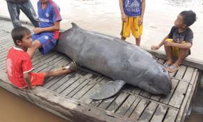 公眾发现淡水豚尸。(柬埔寨‧干拉讯)干拉省居民在湄公河河岸,发现一具淡水豚尸,死亡原因暂时不明。 居民於4日早上9时30分,在干拉省威罗艷县河岸发现豚尸。 据四臂湾水產局官员指出,这头淡水豚重215公斤,长2.3 ...