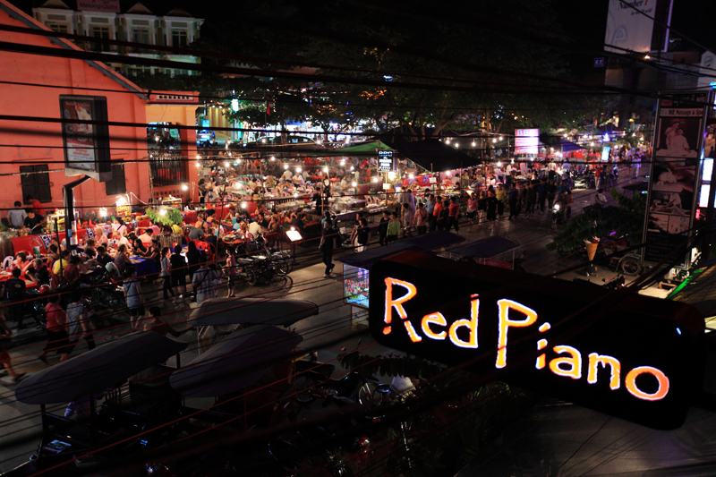 2、去Red Piano喝几杯 暹粒的Red Piano因安吉丽娜朱莉在吴哥窟拍摄《古墓丽影》时,每天都到这家酒吧而名声大噪,现在店里还有她的剧照和签名。很多游客都会点一杯她发明的一种名为TOM RIDER的鸡尾酒。这家店貌似是老街上地理位置最好的酒吧,特别是二楼,整个繁华的街道一览无余。