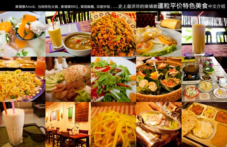 4、吃传统柬埔寨美食 传统柬埔寨料理主要以鸡肉或鱼为主料,其中少不了的调味元素就是椰子。一般在烹饪时会在主料中加入椰浆,有时还会用椰子壳做盛菜的容器。吃高棉菜时不可错过的菜式有阿莫克鱼、柬式春卷、猪肉饭、高棉红咖喱以及米粉汤,这些都是最能突出柬埔寨口味的菜式。
