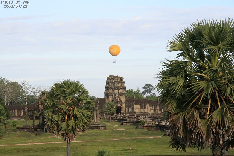6、乘热气球看吴哥 坐上热气球在高处看吴哥绝对是一次超赞的体验!气球用绳索固定在地面,顶点升高至大约200米的空中,旋转2圈后下降。在气球上你可以清楚的看到整个吴哥,景象更加宏伟。早上视野很好,傍晚也很不错,可以看到日落,还能看到夕阳斜下时独特的吴哥窟景致。