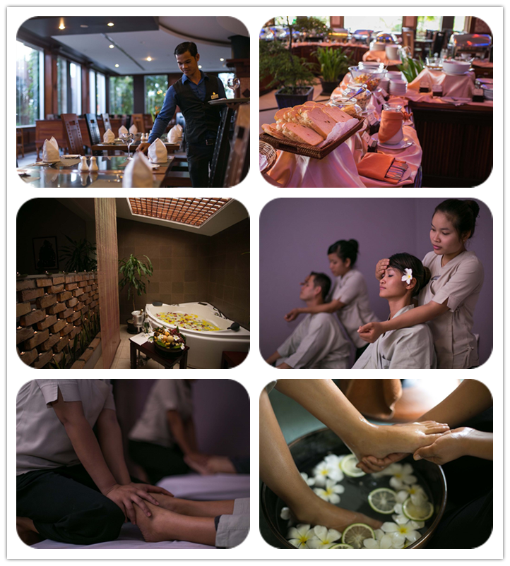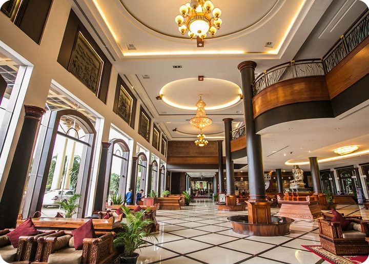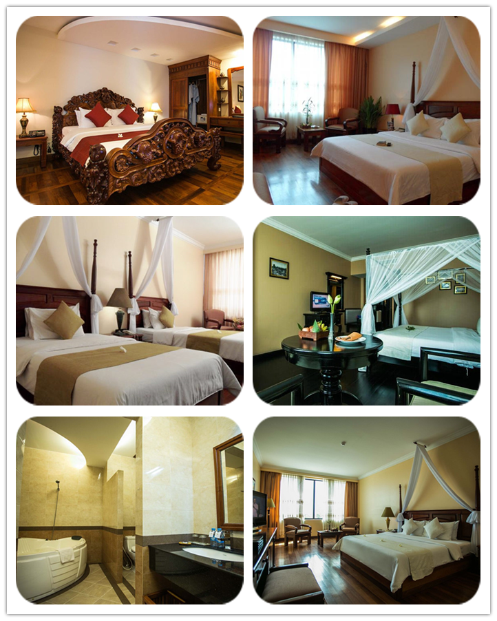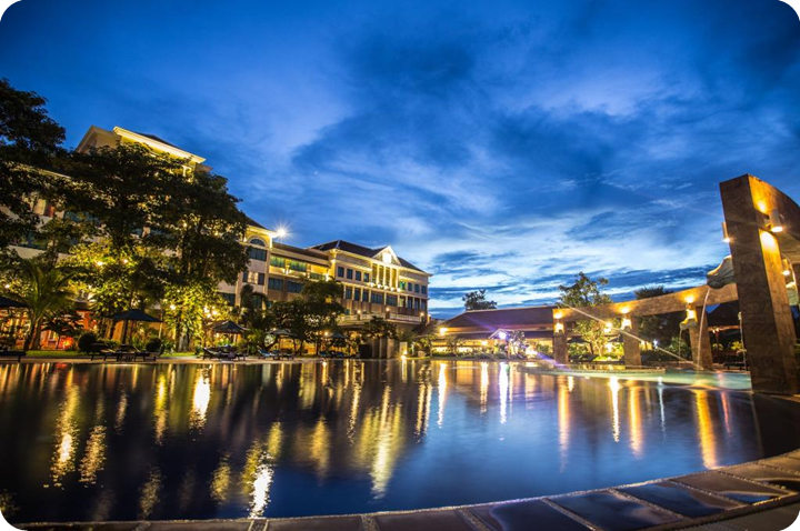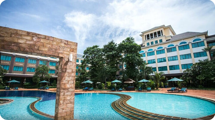 太平洋酒店(当地五星) 2007年开业,位于暹粒的中心地带,靠近柬埔寨民俗文化村、吴哥高尔夫度假村和科萨拉兰寺。附近还有Lucky Mall 超级市场和吴哥购物中心。酒店提供全套 SPA 服务、室外游泳池和健身俱乐部,公共区域提供免费无线,24 小时商务中心、会议室和豪华轿车或公务车服务。