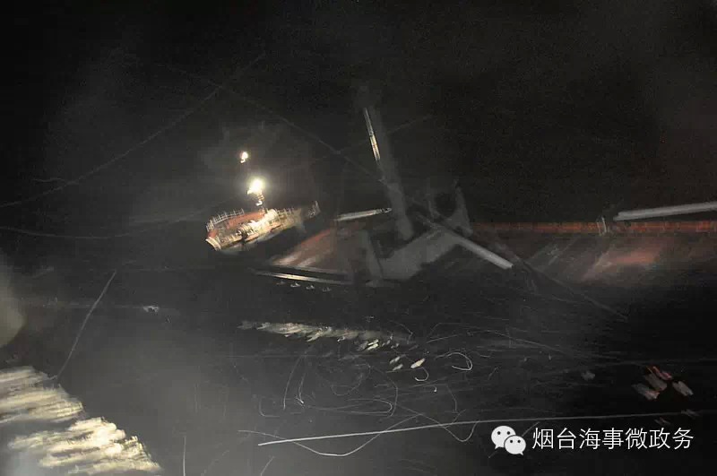 2133时,龙口海事局执法人员冒雪到达现场,发现该轮左倾30度已经搁浅,船头距岸30米,船尾距岸20米,船舶随时有破损沉没的危险。 为防止意外,龙口市海上搜救中心立即调集各方救助力量前来增援,并组织岸上救援力量研究安全转接方案。最终,确定由船员先向岸上发射撇揽枪,岸上人员接住缆绳后,船员再施放救生筏,通过岸上人员拖缆帮助救生筏上岸脱险。