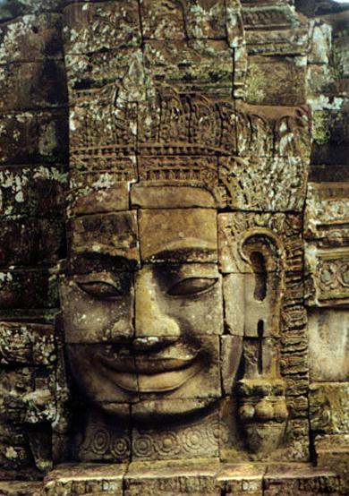 巴戎寺Bayon 在这里寻找高棉微笑是件很有趣的事,位于吴哥城(大吴哥)的正中央,其余48座如众星捧月般全部簇拥在它的周围,这49座佛塔顶都刻有巨大的四面佛,四个面分别代表慈、悲、喜、舍。