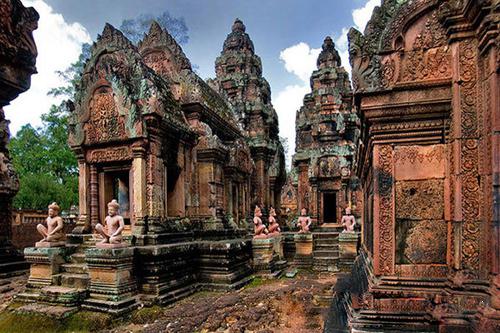 含有大量水分的红土既便于运输、建筑,也利于雕刻复杂细腻的图案。而建筑建成后,经过风干,就变得异常坚硬,千年不坏。内有世界上最好的石雕作品,它是吴哥比较小的一处景点,虽然规模不大,但却声名显赫。
