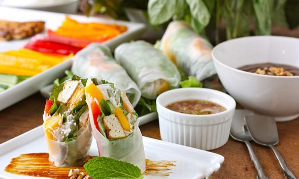 炒好的牛肉配以柬埔寨特有的烤肉酱,配有白饭和炒蛋。 柬式春卷(Fresh Sprin Roll)