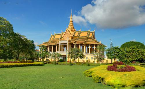 王宫和银殿Royal Palace & Silver Pagoda(金边皇宫) 也称四臂湾大皇宫,坐落于金边东面,面对湄公河、洞里萨河、巴沙河交汇而形成的四臂湾,属于典型的高棉式建筑。从19世纪中叶以后,包括西哈努克国王,先后有6位柬埔寨国王居住于此。
