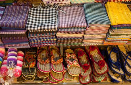 服饰:对民族服装有爱好的人,可以购买“克罗马”(Krama)。“克罗马”是做腰带及帽子的布,有棉制的也有绢制的。不论颜色或式样都很丰富,可以尽情选购。