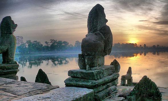 皇家浴池Sras Srang 皇家浴池是举行沐浴仪式的场所,水池中央曾经有一座木质的寺庙,现在只剩有石基。这里是看日出的最佳地点之一,人没有吴哥寺那么多。