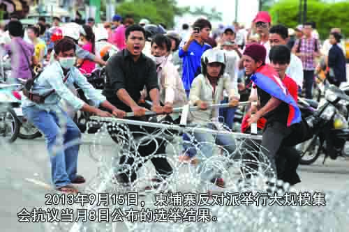 此后一年,柬埔寨是在反对党呼吁重新选举、当选反对党议员抵制国会、城乡民众在政治力量的组织下频频到首都举行街头抗议、工厂工人罢工要求加薪、两党讨价还价地谈判等连续剧般的情节中度过的。直到2014年1月3日,金边的工业园区抗议者与军警爆发冲突,4人丧命于枪下,才换来暴力活动的停息。在政府的禁令下,金边的自由广场不再是反对党的合法聚集场所,金边街头铁刺网路障成为常见景观。