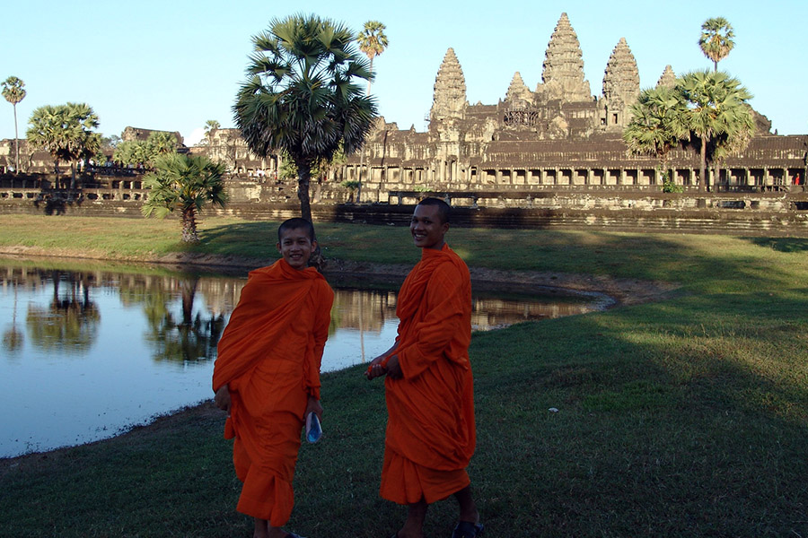 乘船游览东南亚最大的淡水湖—洞里萨湖,拜访奇特的水上城市。游览辉煌的大、小吴哥:周萨神庙、巴戎庙、斗象台、微笑高棉、巴芳寺、蟠蛇水池、空中宫殿等。傍晚登巴肯山观赏“吴哥夕照”。晚餐后自由活动。