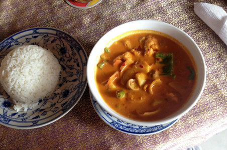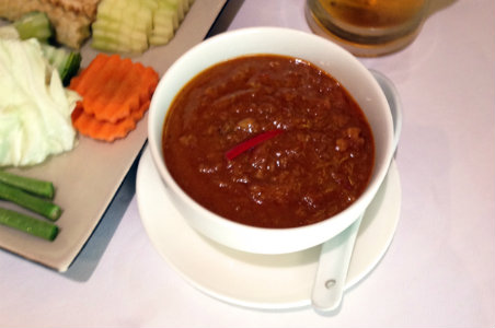 Beef Saraman Curry 这份以香菜和小豆蔻为佐料的炖牛肉在柬埔寨很受欢迎。事实上,它是大型庆典特别是婚宴上的传统菜肴,除了入口即化的嫩牛肉,这份菜的精髓还在于醇厚的椰奶和花生粒。