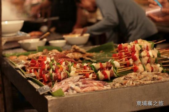 烧烤也是柬埔寨传统的美食之一,新鲜的蔬菜配上海鲜 |