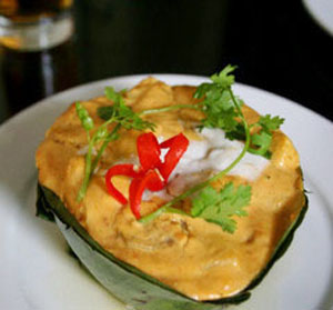传统的柬国美食,可以选择肌肉、鱼或者其他主料。Amok Fish、Amok Chicken、Amok Beef一般都用椰子壳做盛菜的容器,很有当地特色。