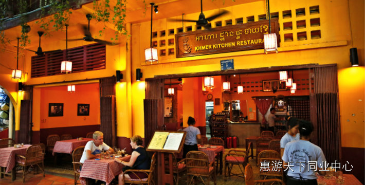 1/ 2 推荐星级 高棉厨房吃柬餐 高棉厨房是吴哥很出名的一家餐厅,英文名称为Khmer Kitchen Restaurant,被许多杂志媒体推荐过,一共有三家分店,老市场街口的那家店经常无座,可以去酒吧街更大的分店,在这里能品尝到正宗的柬埔寨美食,所有菜的价格都为4美金,咖喱和吴哥啤酒是一定要尝试的~。 加关注,要行程,欢迎咨询