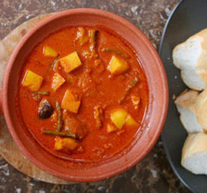高棉红咖喱不像泰国的咖喱那么辣,同样用椰汁做底料却不会过多的放入辣椒。 酸橙高棉牛肉沙拉