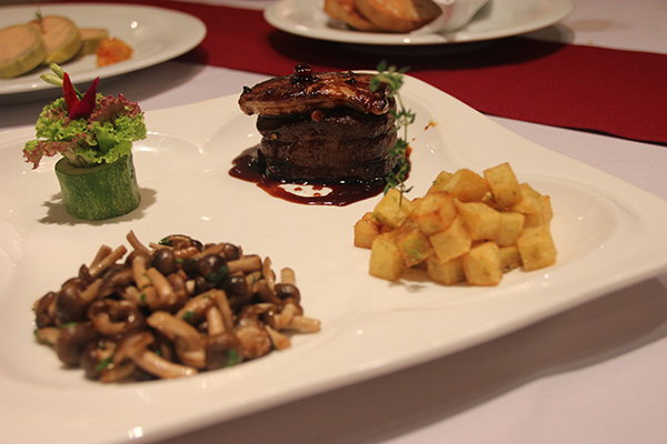 法餐的奢华与细致无可厚非。或许大多数朋友印象中的法餐都少不了“鹅肝”这种重要食材吧,Le Gourmet的香煎鹅肝食材便是纯法国进口的。主厨首先用煎烤后的牛柳做基底,再放上香煎后的鹅肝,搭配鲜炒simeiji蘑菇和马铃薯方块以及松露浓汁,甘香微苦,入口即化,配上红酒风味更佳。捣碎的鹅肝吃多会有一些腻感,所以用木瓜、菠萝蜜特制而成的酸甜酱可谓是其完美搭档。把鹅肝酱放在餐厅手工制作的面包上,再加入一点酸甜酱,啜小口白酒,口感极妙。法国甜点也是法餐的亮点。十分推荐这里的Tatachi(苹果挞)以及甜橙可丽饼,软绵酸甜,冷热交融,可让用餐气氛也跟着浪漫起来哦。 营业时间 : 午餐:12:00--14:00(周日午餐时间延时到15:00);晚餐:18:00--22:00 Lobby Lounge大堂酒廊咖啡厅