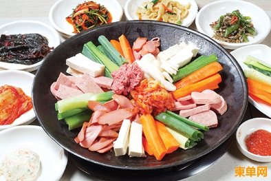 AEON商场里唯一一家韩国料理店,主推反映着韩国历史的budae jjigae(部队汤)。这个菜有一段悲伤的历史呢。 同许多国家一样,第二次世界大战后的韩国经受了较长时间的贫困,二十世纪六七十年代还没有完全解决百姓的温饱问题,即便是首尔(当时还叫汉城)这样的首善之区,依然存在普遍的贫困和饥饿。与此形成强烈对比的是,美军基地里的美国大兵过着衣食无忧的生活,伙食与当时汉城的普通民众相比有着天壤之别。一些美国大兵把过期还没吃完的火腿、香肠随手扔掉。可这些“垃圾”对饥饿的韩国人来说,却像是天上掉下的馅饼。当地人将其捡回洗干净,再加上自制的泡菜、面条、豆腐等煮一下,就成了一顿美味佳肴。最初发明这种“大杂烩”的人,是驻韩美军基地附近的村民。当时人们还给它起了个洋名叫“约翰逊汤”。后来,这道菜慢慢传遍了韩国,名字也逐渐本土化,变成了“部队汤”。这个“部队”指的就是驻韩美军。