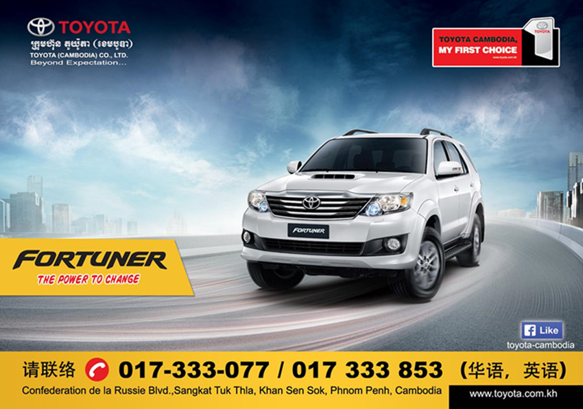 Toyota(柬埔寨) 地址:Confederation de la Russie Blvd,Sangkat Tuk Thla,Khan Sen Sok,Phnom Penh 电话:017 333 077/017 333 853 (中/英)