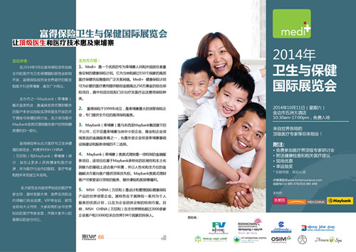 富得保险“健康与保健国际博览会” 引介先进医疗技术和专业医师,惠及柬埔寨民众 2014年9月,富得保险公司宣布由其主办的Medi+ 健康与保健国际博览会即将在金边五洲酒店举行,富得保险将把全球最好的专业医生和医疗技术引进柬埔寨王国,普惠广大民众。 Medi+ 健康与保健国际博览会是由富得保险公司与万欣和(MSH CHINA)和Maybank(柬埔寨)银行携手主办的,其目的在于让更多人获得健康和保健的医疗资讯,同时在行业内为医院、医疗专科、专家和相关来宾提供建立社会关系的机会。 主办方之一的Maybank(柬埔寨)银行,为其贵宾客户提供这次独有的宝贵机会,邀请其贵宾式理财服务客户前来参加这次由世界知名医生提供的健康与保健专题研讨会,这是Maybank(柬埔寨)银行为其贵宾客户提供的特别酬宾福利的一部分。 此次博览会将由世界知名的医疗专家主持,届时各国、各界名流和业内领袖们将会出席。在VIP早会部分结束后,博览会将向大众开放,在这里大家将有机会与世界知名的医疗专家及专科专家会面,并就大家关心的重要议题进行讨论。 健康与保健国际博览会将于2014年10月11日星期六早上9点在金边五洲酒店开幕,10点半开始向大众开放,会议时间10:30 – 17:00, 免费入场。 报名热线:010 885 078/ 010 885 848 (周一至周五8:00-18:00 ) 相关信息: 1.Medi+ 是一个专为常驻柬埔寨的外国人和柬埔寨居民提供的高端的、特制的健康保险计划。它为当地以及超过150个国家提供了高品质的医疗保健医院以及广泛的医疗服务商网络。Medi+ 健康保险计划拥有综合性的保险保障,可为必要的医疗费用,包括住院医疗费、门诊医疗费以及紧急医疗救援在内的赔偿金额高达250万美金。 2.富得保险在柬埔寨具有最大市场规模,也是最先拥有保险核保服务的保险公司,自从1999年成立以来,就为柬埔寨众多企业和个人提供了全面和高效的保险服务。 3.Maybank(柬埔寨)银行是马来西亚Maybank集团旗下的子公司,不仅是柬埔寨当地中小型企业、大型商业和企业领域首选的金融服务商之一,也是外资企业在柬埔寨投资的基础设施建设和发展投资商以及服务行业的不二选择。 4.Maybank贵宾式理财是一金融服务项目,该项目在基于Maybank多样化的区域性和本土经验相结合的基础上满足客户所需,为客户提供最高优先权、并以人性化和全方位的金融解决方案来满足客户的需求。Maybank贵宾式理财客户在服务、特权和酬谢方面均可享受独特的利益。 5.MSH CHINA(万欣和)是设计和管理国际健康保险产品的世界领军企业。其特色在于拥有一系列为个人服务的优质计划,以及为企业团体定制的特别方案。目前,MSH CHINA(万欣和)在全球拥有超过2000多家企业客户,并拥有330,000多位来自世界194个国家的被保险人。
