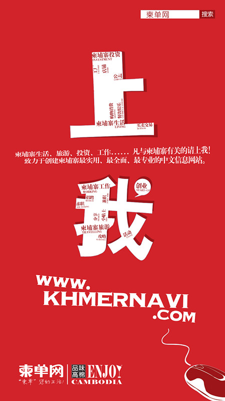 【关于柬单网】 “柬单网khmernavi.com”是一个引导在柬华人生活、提供真实商家信息、华人互动参与的中文信息网站,旨在简单您的生活!更多信息请关注中文杂志【品味高棉】 微信号:KHMERNAVI