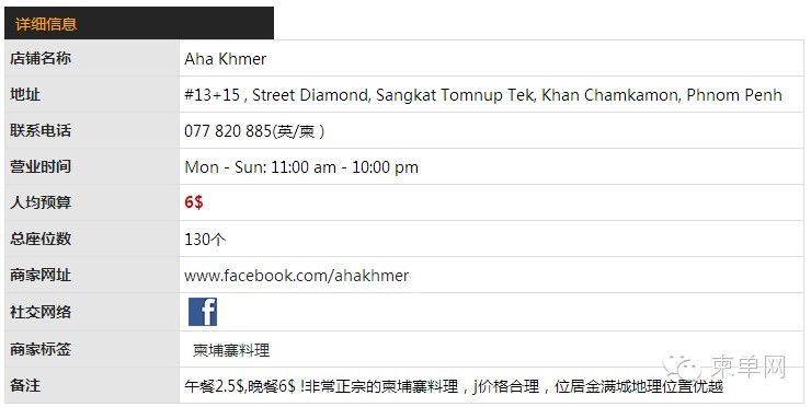 另外,Aha Khmer是以森林为主题的餐厅,可以给你更多想象的空间,让你体验在大自然中就餐的情景。店铺氛围清新自然大气,适合家庭聚餐,朋友聚会以及商务接待。