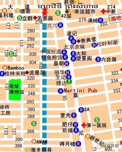 金边:金边市95街45号马丁尼酒吧(348街的街口,310街和360街之间的那一段,在莫尼旺大道上,看到位于310街口的丽华酒店后拐进310街,之后第一个路口左拐就是95街,马丁尼酒吧位于第三个路口。)