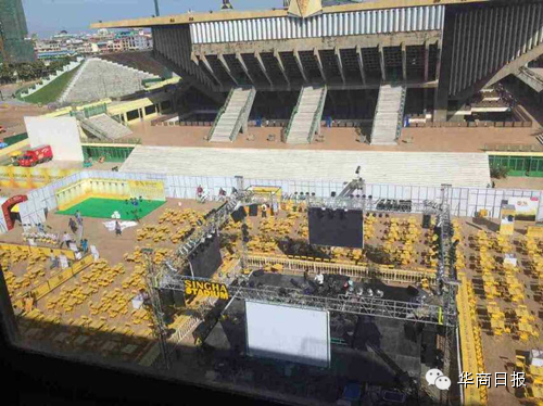 在演唱会旁边,还有一个绝佳的免费观看位置。地处金边市中心黄金商业区的大都会▪茶餐厅(CITYMALL RESTAURANT),处在金边城市的制高点,毗邻奥林匹克运动场,视野开阔,开设在大都会广场四楼,前后电梯直达。从餐厅楼上刚好可以清楚看到舞台正面,还可以多角度全景观赏。