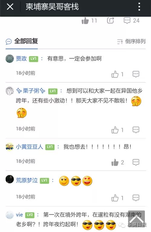 昨(22)日,我们在吴哥客栈微信社区发起的“跨年夜party”活动一经发布,短短一天时间,就吸引了不少小伙伴跟帖报名参与。看看大家的反映,你还有理由窝在家里跨年倒计时吗?