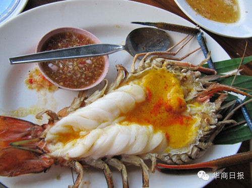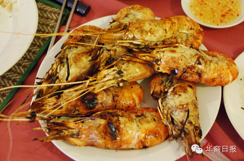 (kaba99)由于照片实在很懒得整理,所以再来一篇食记。跟团去柬埔寨,似乎不少旅行社似乎都会安排一餐吃这玩意儿,“大头虾”俨然也快变成这地方的名物之一。才刚下飞机,就带我们来吃这么补的东西。 我们吃的是炭烤的..长长的螯(前脚)已经被拔掉了..每人两只