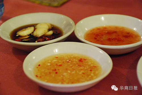 这虾膏一定超多的,手很忙一边拨虾一边拍别人都吃成那样了。开动~~这虾壳非常硬..先把头扭下来..挖~~果不其然..一大陀虾膏..可惜吃多会怕..我的胆固醇......再吃恐怕会破表@_@ 虾子本身味道很淡.. 直接炭火烤过并没有加调为料或盐巴,所以还要沾个酱才好吃(据说母虾口感较好..不过我不会分..) 沾酱有三味,酸甜酱,蒜片酱,油辣酱
