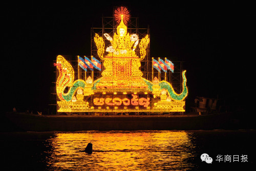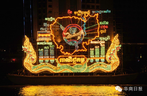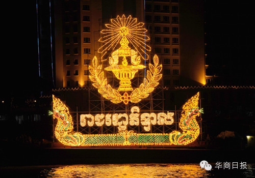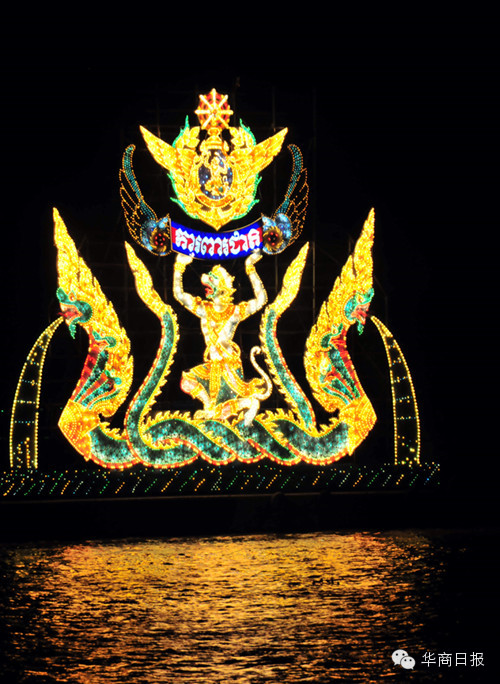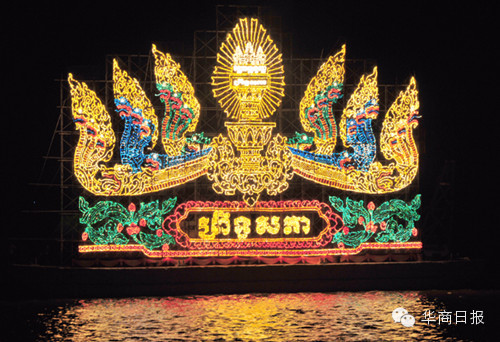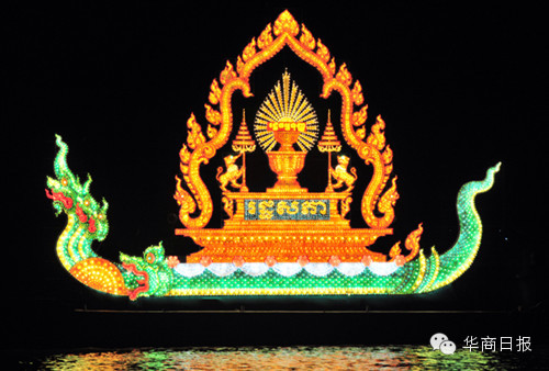 今年的灯船共有10艘船队,按照顺序排列在洞里萨河水面上闪闪发光。领头灯船是王宫灯船、随后是参议院灯船、国会灯船、王国政府灯船、司法部灯船、国防部灯船、内政部灯船、商业部灯船、旅游部灯船和金边市政府灯船,各展英姿,光彩夺目。
