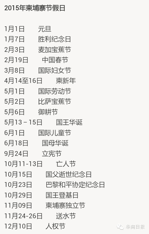 柬埔寨的大小节假日很多,像亡人节、送水节、独立节等节日还会有庆典活动。