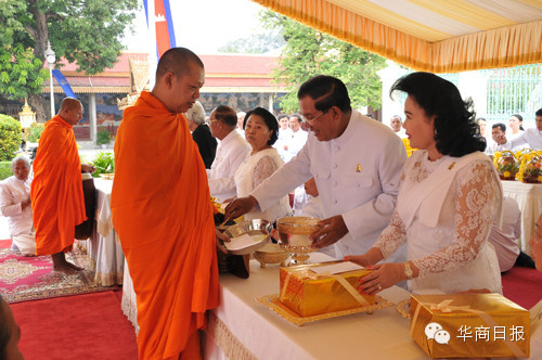 那利、陈生/金边报道 今(15)日上午,柬埔寨首都和各省政府文武官员,按照柬佛教传统风俗,悼念诺罗敦·西哈努克国父逝世(2012/10/15-2014/10/15)两周年,并举办祭拜仪式。 国家节日筹委会、王廷事务部和政府部门等机构的高级官员穿着官方礼服,于上午8点开始,在独立碑东面国父纪念碑前敬献花圈,悼念柬埔寨独立和国家复兴的伟大领导人-诺罗敦·西哈努克国父。 诺罗敦·西哈莫尼国王、诺罗敦·莫尼列国母、王族成员、国会主席韩桑林亲王及夫人、政府总理洪森亲王及夫人文拉坭亲王、各部门高级官员,在王宫举行佛教诵经超度功德、布施僧侣用品仪式,缅怀国父一生为国家建设所作出的丰功伟绩。 国家节日筹委会主席孟肯、王廷事务部、参议院、国会、政府45个部门、机构代表、金边市民和各省级代表,在王宫前广场延请500位僧侣举行布施斋饭,奉送功德给西哈努克国父英灵,荫庇全国人民安居乐业,过上美好生活。 诺罗敦·西哈努克国父2012年10月15日凌晨在中国北京病逝后第3天,灵柩运返金边王宫,按照佛教传统举行悼念仪式。2013年2月1日,国父遗体从王宫移置王家田纪念塔,然后于4日下午举行火化仪式。5日,国父骨灰清理后装进3个金色骨灰坛,并于7日移至王宫纪念塔安置,11日,国父骨灰坛正式供奉于贡特波帕舍利塔内安息。 这里是华商日报 微信号:huashang1993 点击“阅读原文”浏览更多柬埔寨新闻 ↓ ↓ ↓ ↓ |