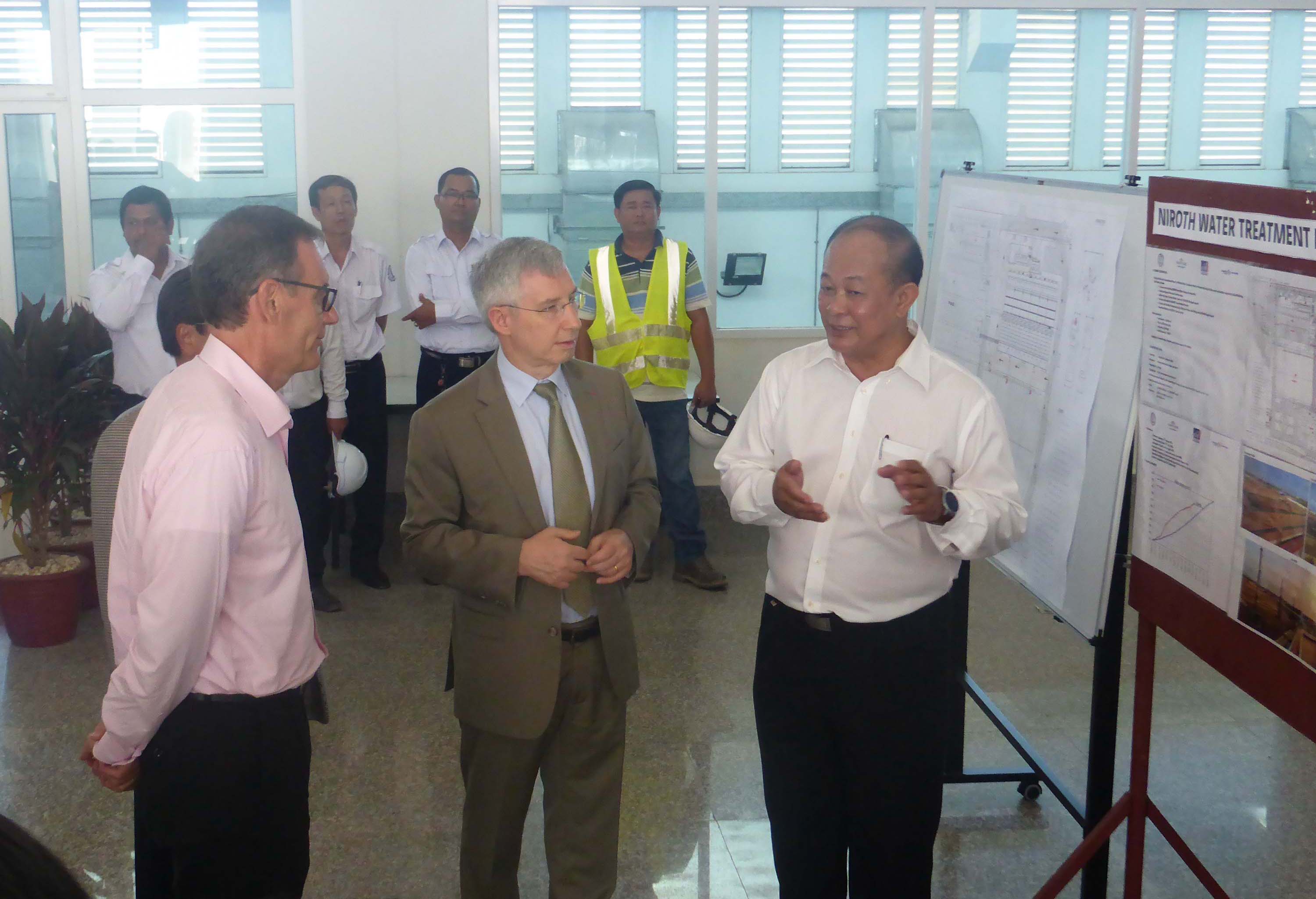 | 法国驻柬大使金·克洛德·潘柏甫(Jean-Claude Poimboeuf)对金边市水务局生产的自来水质量表示肯定。 据法国大使馆通告,潘柏甫大使13日到金边市水务局参观访问尼鲁自来水二厂第二阶段工程。大使表示,金边市水务局自来水厂按国际标准生产自来水,自来水漏水率控制在7%,比法国的漏水率15%还低。 潘柏甫说,自从1992年以来,法国政府不断向柬埔寨提供援助,通过贷款兴建供水系统,之后2006年通过亚洲开发银行(ADB)贷款1110万欧元,在水净华侨地区兴建自来水厂。还有2002年法国开发署提供6100万欧元贷款,扩大金边市水务局自来水生产规模。 自来水供应对国家的发展具有重要作用。柬埔寨面临的问题是无法将自来水供应扩大到乡区,让更多乡村的民众饮用到干净卫生的水。农村地区的自来水供应是当务之急,成为柬埔寨王国政府的优先发展工作。该工作当前还面临许多困难,包括缺少水源、服务工作与供应网络复杂、人口密度低等,这些问题使不少投资商却步。 目前,城市和农村地区的水费标准不一,城市的水费由政府规定,农村地区是由投资商规定,因此农村水费较昂贵。尽管如此,近年来柬埔寨农村的自来水供应和环境卫生条件还是逐渐得到了改善。 |