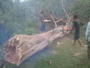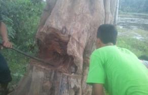 (柬埔寨‧暹粒讯)不法之徒见财眼开,竟打起吴哥古迹区珍贵红木主意。 据了解,本月4日晚,为数不明的人士,动用锯木机企图砍伐位于暹粒市诺戈高村的一棵古老红木树,惟无法得逞;仙女机构在接获消息后,派出工作组实地调查,并与当地政府共同保管和保护红木。 据仙女机构环保和森林管理局环保办事处主任赵坡表示,被盗砍的老红木长约8米,直径83公分,其树身已几乎被锯成两截,由于担心大树倒塌,引发意外及避免不法分子盗走,其工作组在得到仙女机构领导人的同意后,决定锯倒这颗红木。 然而,他指出,当工作组试图运走红木时,遭到一批民众阻止,并指控其工作组破坏树木。 “即使在分区理事会和村长出面及解释,村民仍然不肯让我们搬走大树,因此红木只得暂时交由村长保管。” 村长向媒体表示,在锯倒大树之前,他已经通知当地村民,惟在大树锯倒后,突然约9名村民出来抗议,阻止移动树木。 他说,他将与分区理事会合作,同时将派出保安,看守红木,以免被人盗走。 另一方面,环保和森林管理局长宁章沙棉表示,其工作组正与环保部官员合作,以调查和揪出嫌犯,以将他们绳之以法。(柬埔寨星洲日报) 老红木树身几乎被锯成两截。 工作人员将红木树锯倒,以防树木突然倒塌时酿成意外事故。 仙女机构和环境部官员调查老红木树被盗砍事件。 |