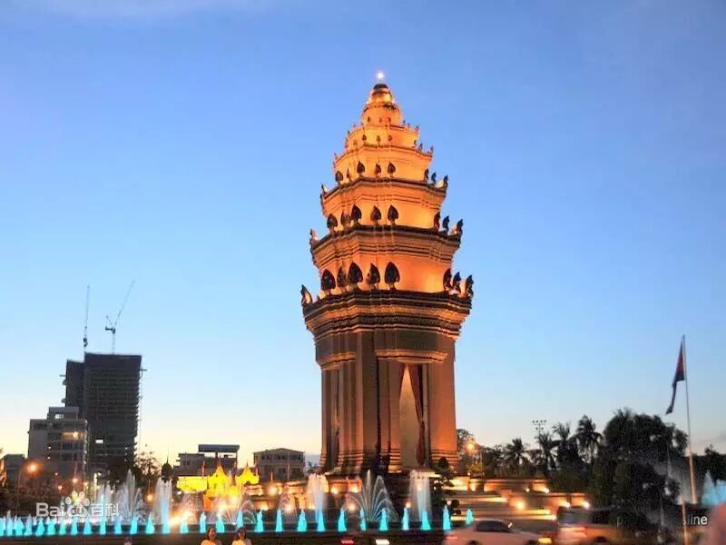 //长期被侵占// ▼ ▼ ▼ ▼ //民族独立// 为纪念这一历史性的胜利,在金边建立了高大雄伟的独立纪念碑。于1958年动工兴建,1962年11月落成。这一具有民族风格的建筑,巍然矗立在金边主要大街诺罗敦大道的南端,与其北端的塔仔山遥遥相对。 每年独立节,柬埔寨国王或者国王代表都在此举行隆重的庆典,而来往的外国元首也多到这里献花圈。 |