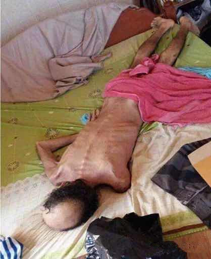 在出租屋内,发现了这名男子,面朝下,而且全身瘦弱,几乎只是皮包骨,看起来很恐怖。