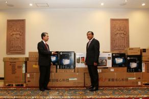 会晤结束后,中国驻柬埔寨大使熊波向外交部移交一批办公设备。