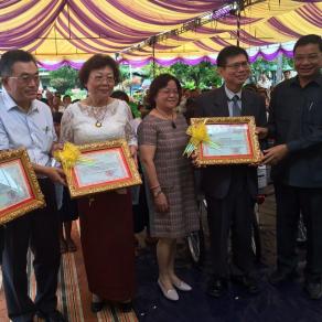 磅清扬省长蔡占登向热烈帮助社会的臺商郑香禹、戴昌华、黄桂云夫妇颁发感谢证书 为表彰台商公司董事长郑香禹、千顷公司董事长戴昌华、黄桂云夫妇不遗余力的捐献帮助当地社区,磅清扬省长蔡占登亲自向郑香禹、戴昌华 ...