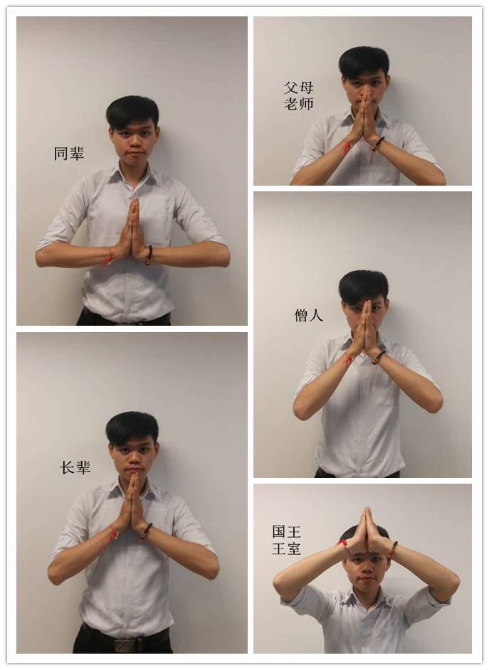 话说,虽然柬埔寨国家落后,但是对礼仪还是保留的特别完整。 小编根据生活多年的经验整理了这篇文章,里面整合了一些柬埔寨的礼仪,和不能触碰的雷区。希望大家看了之后能更了解柬埔寨,更好的融入柬埔寨生活。 见面 合十礼是柬埔寨最常见的一种相见礼仪,行礼对象不同,姿势也有所不同: -同辈相见,行礼时,十指并拢,双掌合于胸前 -晚辈见长辈,双手合十,举至下颌 -向父母,老师行礼,双手合十,举至鼻尖 -向僧人行礼,双掌高举至眉间,两拇指靠近鼻尖 -拜见国王王室,跪地,双手合十,高举过头 穿着 柬埔寨较为保守,不喜穿着过于暴露。 尤其进入寺庙、皇宫、古迹等神圣场所。忌穿短裤、短裙,长度要过膝,衣服要遮住肩膀。(记住了!不然你只能被晾在门外咯。。。)