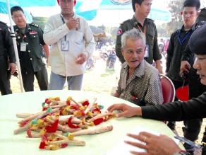 (柬埔寨‧金边讯)桔井省七旬老翁骑单车400公里来到金边,想趁送水节贩卖商品赚钱养家,岂料却因售卖“危险武器”而被当局扣查。 被扣老翁为润沙蒙(70岁),是骑乘一架旧单车,从家乡桔井出发,骑了将近400公里远途,于前天(14日)抵达金边,并在河边一带摆摊贩卖自己亲手制作的小工艺品。 负责维持送水节公共秩序的警方人员昨天发现,老翁所贩卖的商品中,竟包括被禁止的“弹弓”,结果老翁连同商品被一并带回警局以作进一步调查。 老翁告诉警方,为了赚钱支撑家庭经济,他决定从桔井赶到金边,以趁送水节赛龙舟人潮,出售手工艺品赚取收入。 他说,此次他一共制作了44个“弹弓”,并卖出了其中20个,每个售价为5千柬币(1.25美元),惟剩下的22个被当局发现及充公。 警官同情老翁处境 在获知老翁的处境后,金边警局副局长松利决定自掏腰包,请老翁享用一顿丰盛午餐,然后再赠送一架新单车、一批物资及5万柬币盘缠,说服老翁同意返回家乡。 据警方表示,为了维护送水节庆典公共秩序和游客安全,当局严禁任何人贩卖或使用“危险武器”,而老翁所出售的“弹弓”可以被不良份子利用来伤人,因此引起当局高度重视。 无论如何,已年过70岁的古稀老翁独自骑单车行走400公里长途,其惊人毅力也令警方感到万分佩服。(柬埔寨星洲日报) 警方充公老翁售卖的“弹弓”。(图:柬埔寨星洲日报) 老翁被连人带车送上警车,以被送往警局接受调查。(图:柬埔寨星洲日报) |
