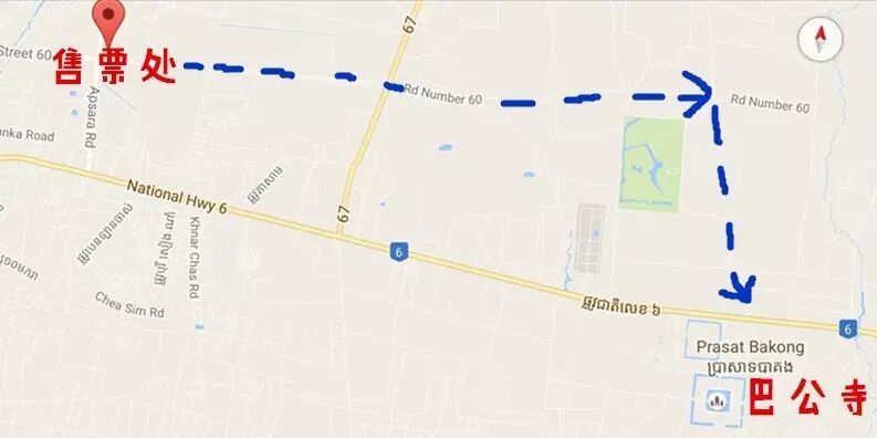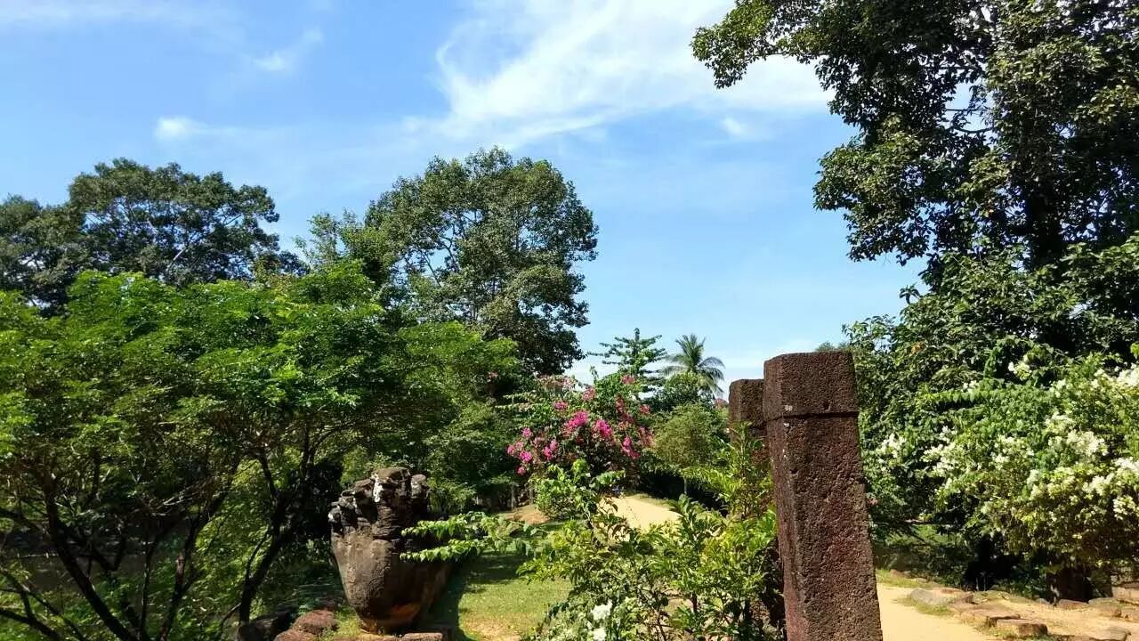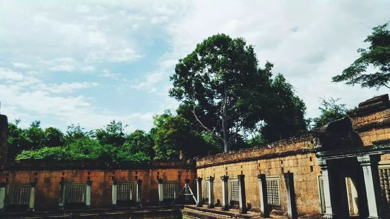 我没有直接向北前往大小吴哥,而是向东,沿着street 60(60米路,晚上这里的烧烤又好吃又便宜!)直行,过了一家高尔夫球场再向南行,去过的朋友可能就知道目的地在哪儿了——巴公寺。