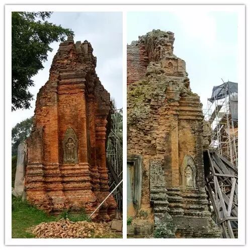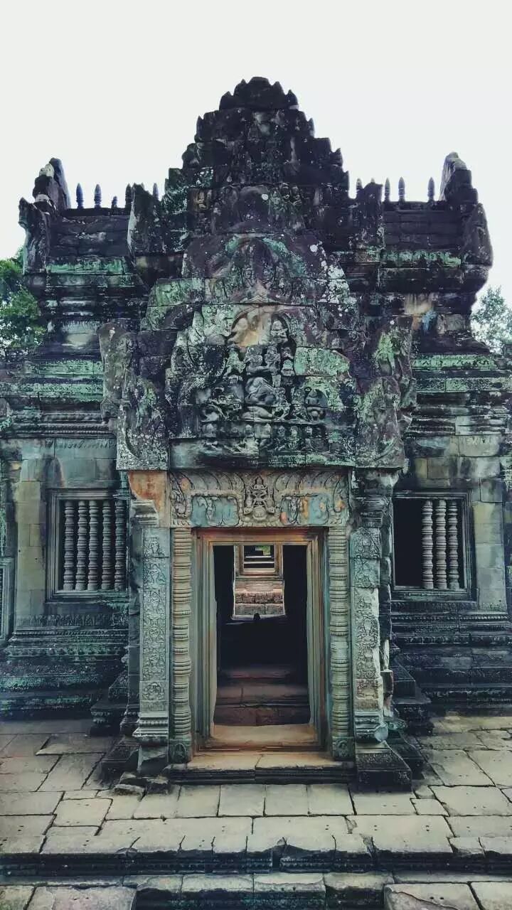 离开巴公寺后,下一站是班提色玛寺(Banteay Smare),位于整个吴哥景区的东北方向,所以骑车向南直行就好了。 我偏爱乡村小路,虽然有些颠簸,但一路风景美不胜收,没有吓人的大卡车,倒是一只只肚皮朝天的猪仔见了不少,猪蹄子还晃来晃去的。 前往班提色玛寺的游客很少,喜欢安静的游客不能错过。 这座寺庙保存相对完整,建于12世纪初叶娜迦的石雕出现在塔尖和栏杆上,栏杆修复的痕迹还在,不能坐上去。 这个石头盒子被认为是用来倾倒死者骨灰的。 这个塔尖的浮雕描绘了八只手臂的毗湿奴将阿修罗按倒的情形。 一重又一重门,穿越时光的罅隙,历史的画卷缓缓展开,猫咪则在遗迹和脚手架旁小憩。 |