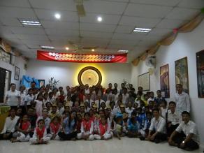 (柬埔寨‧金边讯)柬埔寨一贯道“宏埔佛堂”,上周日隆重举行了成立15周年(2001年-2016年)庆祝活动,来自四面八方的道亲前来一同祝贺宏埔佛堂15岁生日。 台湾安东总坛黄建文秘书长、得力护持的宝光建德詹秀鸿坛主、常洲组黄点传师,以及来自柬埔寨境内的茶胶省、白马省、马德望省等地的道亲一同出席活动。 宏埔佛堂堂庆活动在上午隆重举行,佛堂前搭了帐篷,设有签名布,由多位学生在大门口迎接来宾,显著喜气洋洋的气氛。 堂庆活动由“献供、请坛、道喜”揭开序幕。 宏埔佛堂邱丝点传师在堂庆典礼上致词时回顾了宏埔佛堂成立的情况。 她说,她本人和各位老坛主一共6人从2001年4月1日来柬埔寨开荒。在一切不足的情况下得到天恩师德、各界人士、各方道亲的帮助,仅仅两周之内便买下了房子,安设了“宏埔佛堂”。 他表示,由于考虑到4月份天气炎热,而是正逢柬埔寨新年,人们都要回家乡,所以今年选择在送水节大家放假期间隆重举行庆祝活动,并顺便召开为期3天的“敦化班”( 13到15日)。 “我很高兴能为柬埔寨学生们提供学习中文的机会。佛堂希望透过小小的贡献,参与培养柬埔寨人才,从中提高人民的生活水平。” 在宏埔佛堂堂庆活动上,在这温馨的道场学习华语、拜佛、行善、学会孝顺。 一名学生代表说:“这段时间在宏埔佛堂学习,让我们学会了改变自己的习气毛病、傲气、自私,懂得帮助别人,学会体谅别人、尊重、低心、孝顺,也学会有信心、耐心、用心地处理事情,道场也给了我们学习和提升、充实、前进的机会。” 在庆祝活动上,学生给全场带来了充满喜气洋洋的精彩表演,包括吉他演奏、儿童读经、道亲独唱、柬文歌、华语歌演唱等,获得观众一次又一次的热烈掌声。(柬埔寨星洲日报) “宏埔佛堂”庆祝成立15周年,众多道亲前来参加活动。(图:柬埔寨星洲日报) |