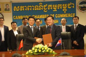 柬埔寨总商会和中国商务部对外贸易中心前日下午在金边签署合作谅解备忘录,柬埔寨总商会副会长林兴和中国对外贸易中心副主任徐兵代表双方签字。 根据备忘录,双方將推进两国经济交流合作,拓展合作领域,进一步深化 ...