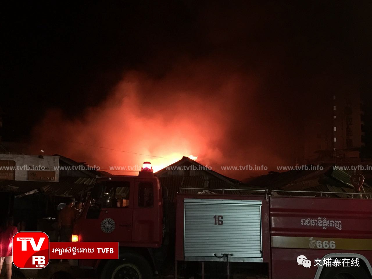 根据TVFB记者的报道,1月23日的凌晨四点钟甘达市场发生大火,很多的店以及物资被大火烧毁掉,而起火原因还未知,地点位于甘达市场一号隆边区。 甘达市场在被大火燃烧时,我们看到警方和消防员细心的正在迅速的在对大火燃烧的小店铺进行喷水灭火。 大火震动到附近的居民,警方暂时无法详细的说明这次大火的原因出在哪里,但是大概原因可能是电线老旧短路导致的。 消防员共十八辆救火车已经赶到甘达市场发生火灾的地点进行灭火工作! 到达助灭火的救火车分别是:国防部的救火车三部、金边武装刑警救火车两部、吴哥啤酒公司的救火车一部,这次大火开始起火在四十九号牌的小店铺,而且大火总共吞没十四间小店铺及大火蔓延到其他三间店铺共一起十七间店铺。 现在经过救火车的灭火共达二十四部救火车才在三十分钟内熄灭大火,而这场大火并没有人受伤。 来源柬埔寨在线 |