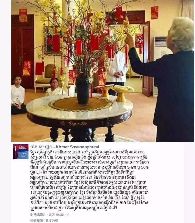 前(29)日,一名柬埔寨反对党人士庞守库(Pang sokhoeu)在脸书上发表了“太后应以身作则,不应过中国春节”的言论,引起网友热议。 庞守库认为:“在柬埔寨,国王、太后、洪森家族、部长、省长等,几乎都在春节期间祭祀(虽然很多人并不知道自己的祖先是来自中国哪里)。但是现政府对华人的重视程度高于柬埔寨人,我是不能接受的。现在的柬埔寨,说是高棉不像高棉,说是中国不像中国,说是越南又不像越南,这要我们怎么放心把自己的命运交给政府?你们去看一下领导人的家族来源,波尔布特、洪森这些领导人都有中国人的血统。在我看来,跟哪个民族混血不重要,重要的是认同高棉民族!这样对我们的国家来说才是最好的!”