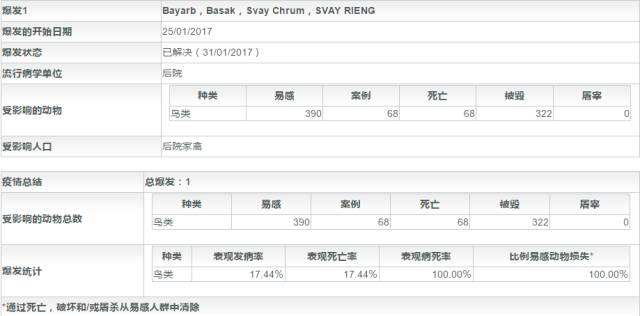 近日,世界动物卫生组织(OIE)发布报告称,柬埔寨东南部柴桢省(Svay Rieng)出现高致病性H5N1禽流感疫情,该病毒已致68只家禽死亡。