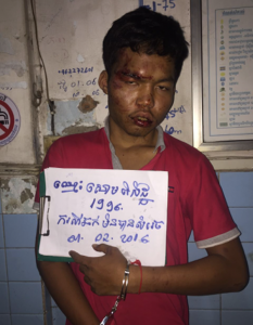 (柬埔寨‧金边讯)两名男子掠夺妇女手机,其中一人被民众逮到,痛殴一顿。 这起事件是于前天晚上9时30分,在玛卡拉区四臂湾分区苏他罗大道发生。被捕的嫌犯为苏比瑟(21岁),事主为Christopher(36岁,菲律宾籍)。 事主指出,事发前,她沿着苏他罗大道骑摩托车去买食物,驶至案发地点时,突然有两名共乘一架摩托车的男子靠过来,其中一人伸手掠夺其手机。 当时有人目睹匪徒的行为,马上骑摩托车追上,匪徒意外摔倒,其中一人被民众制伏,在警员抵达之前,把他殴打一顿。 嫌犯已被警方押往警局立案,依法处置。(柬埔寨星洲日报) ![]() 男嫌犯被民众殴打受伤。 |